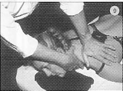 derrière le sujet place ses mains à plat sur chaque épaule, la première